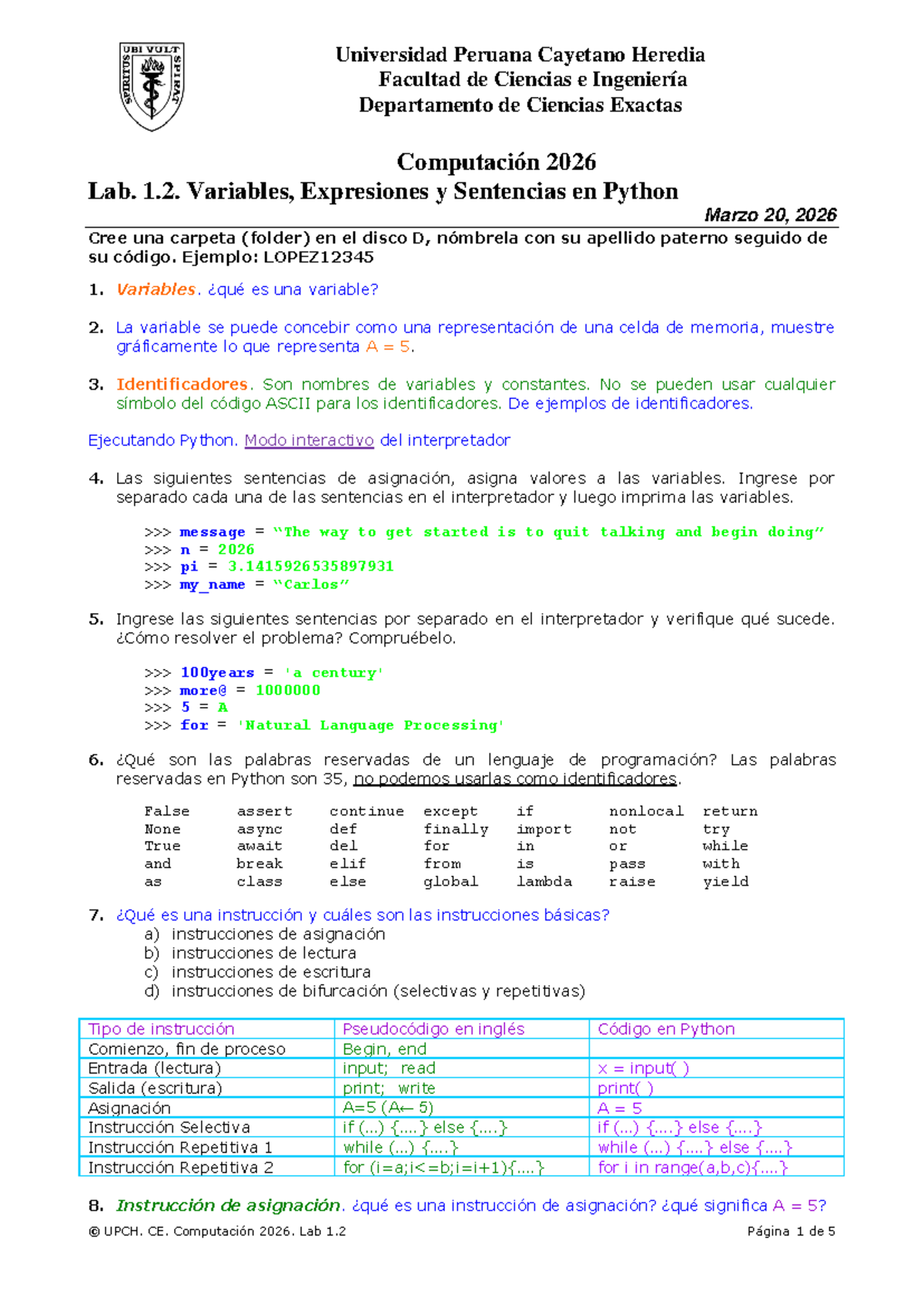 UPCH CE Computación 2026 Lab 1.2: Variables y Expresiones en Python ...