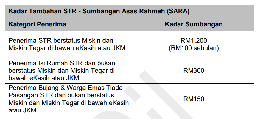 Sumbangan Asas Rahmah (SARA) : Bantuan Tambahan STR 2024