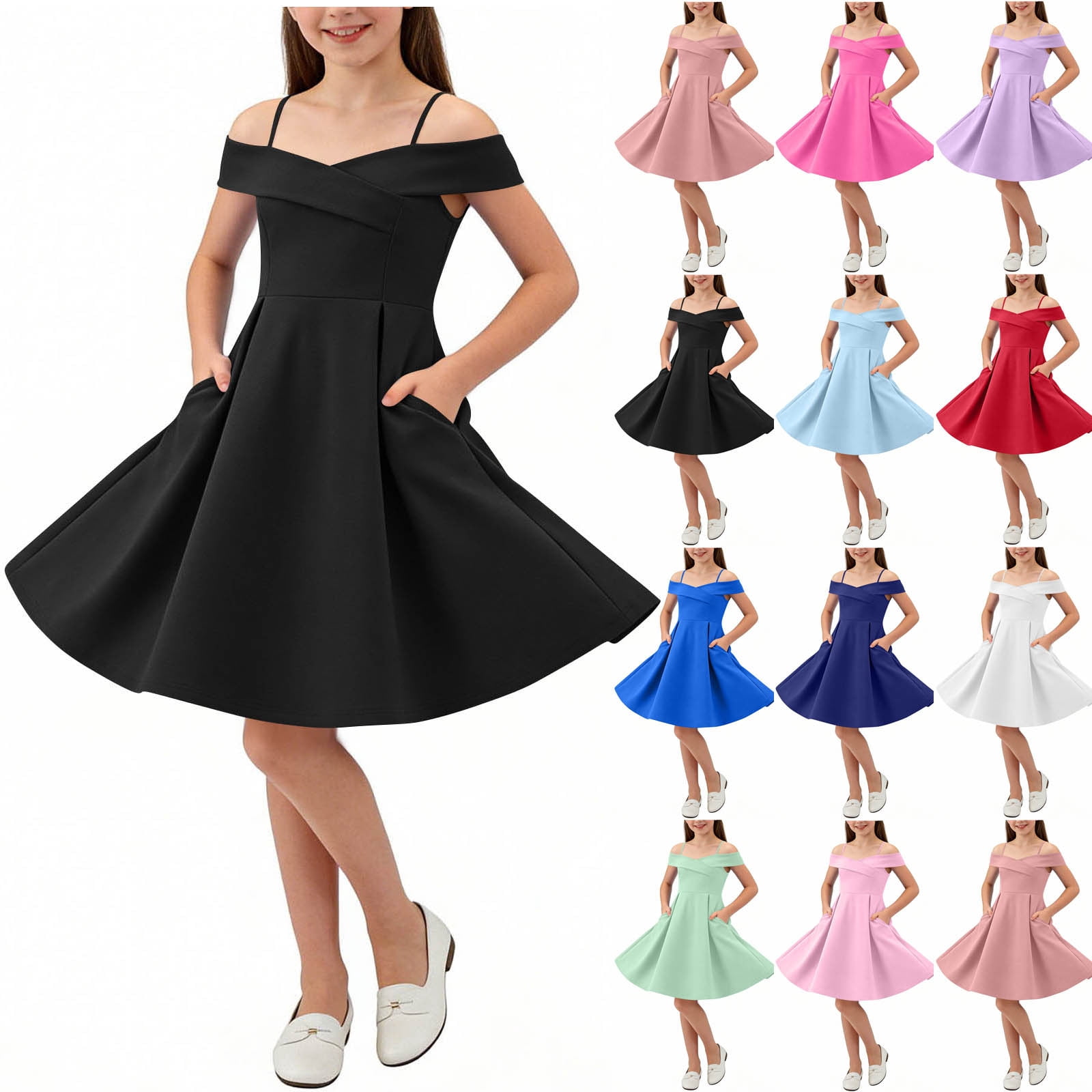 Ashirexll Girls Summer Dress Off Shoulder Spaghetti Strap Adjustable V ...
