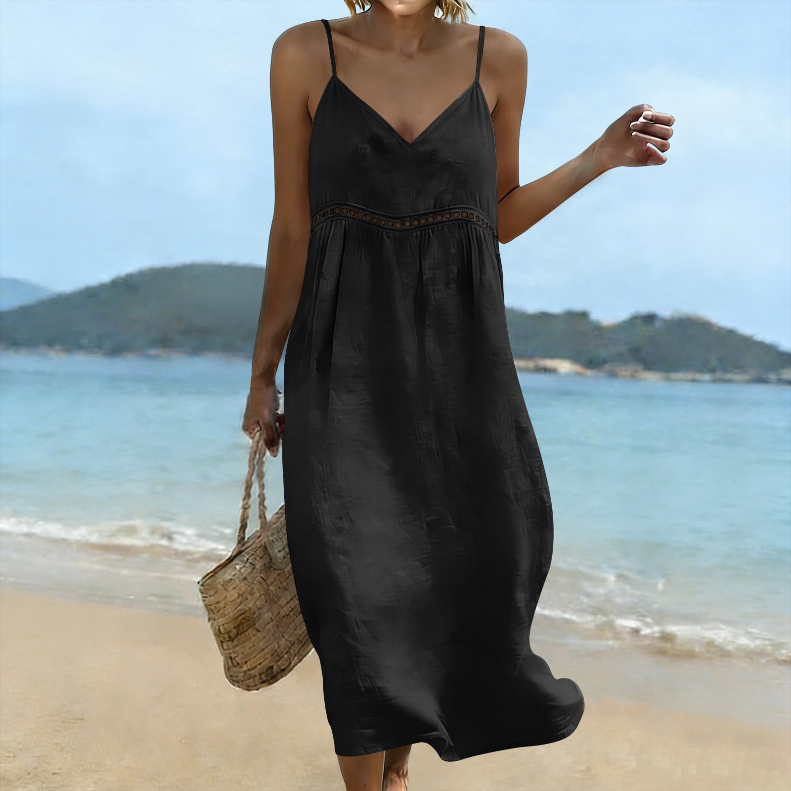 Avirosel Women's Casual Long Skirt with V-neck Lace Straps, Breathable ...