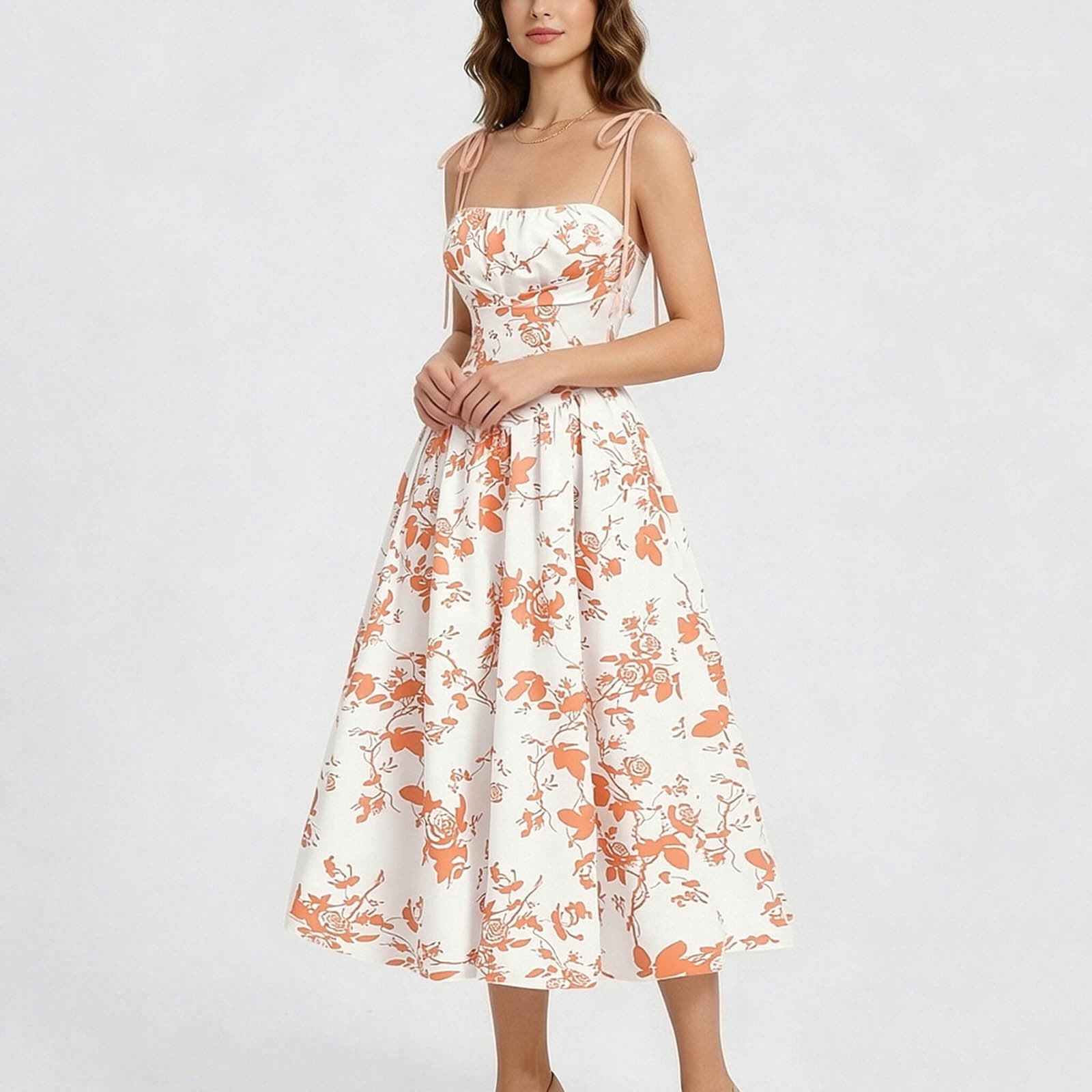 Busydd Floral Boho Dresses for Women Fashion Square Neck Spaghetti ...