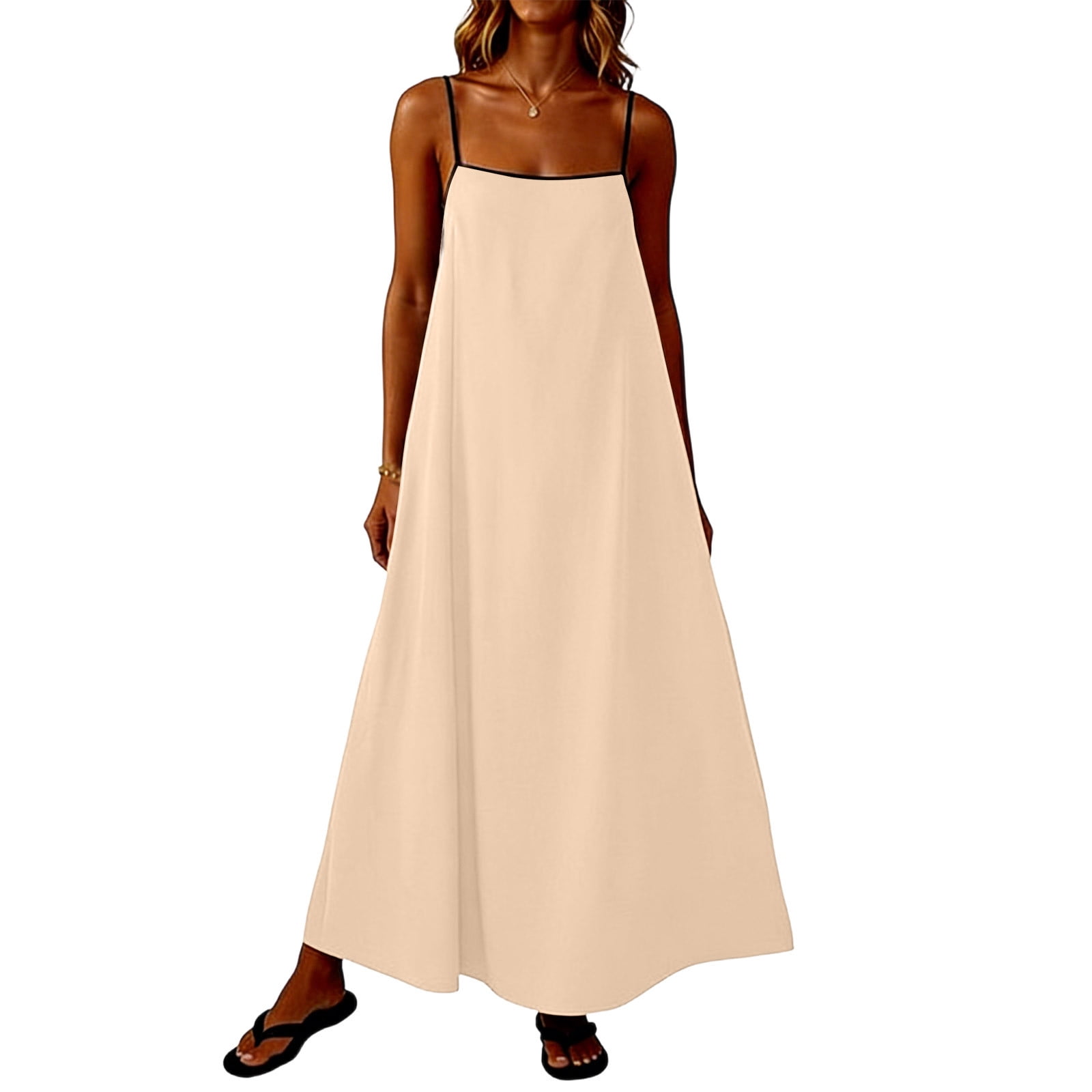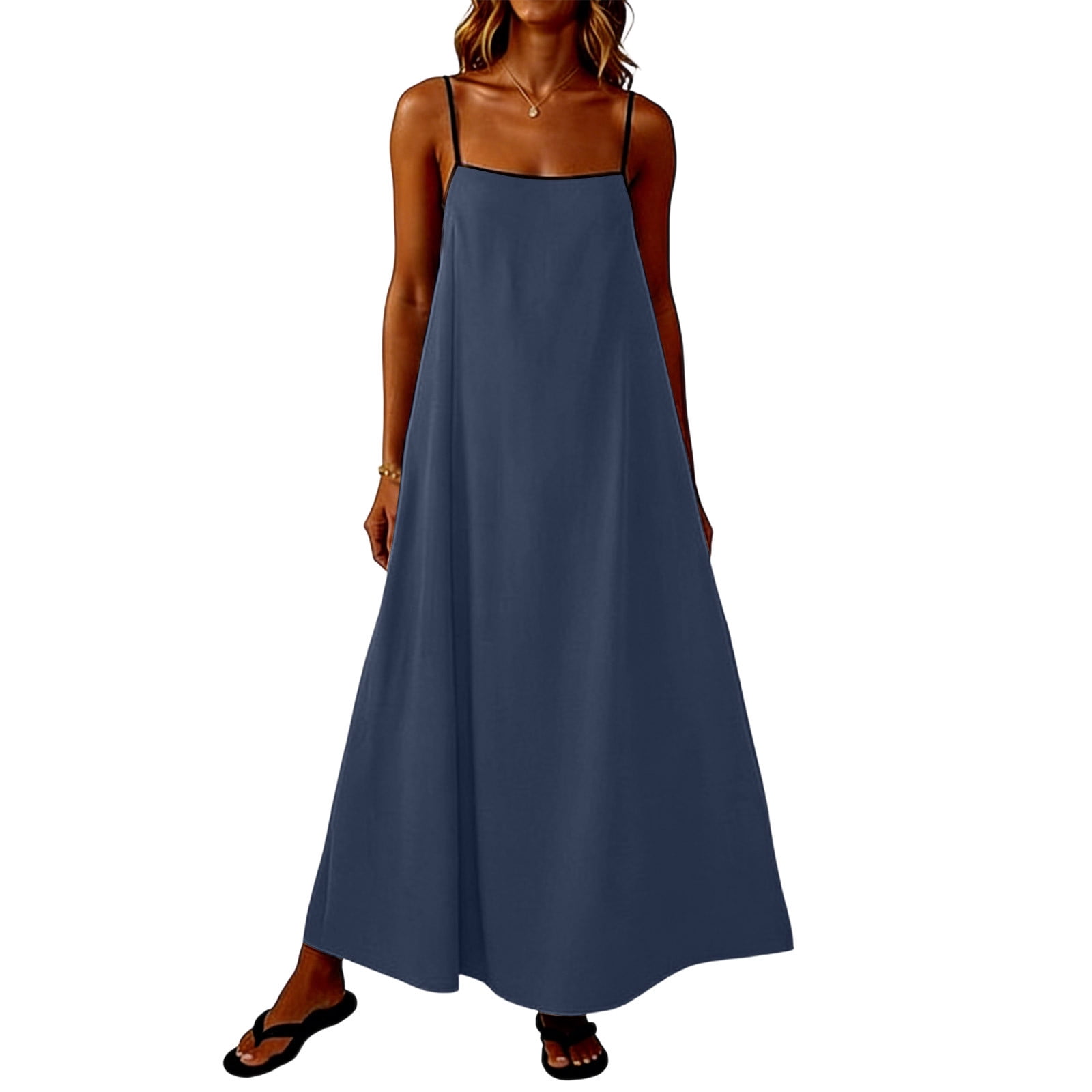 ClodeEU Women's Spaghetti Strap Maxi Dress, Casual Square Neck A-Line ...