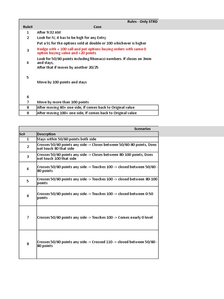 Daily Straddle Rules | PDF | Option (Finance) | Market (Economics)