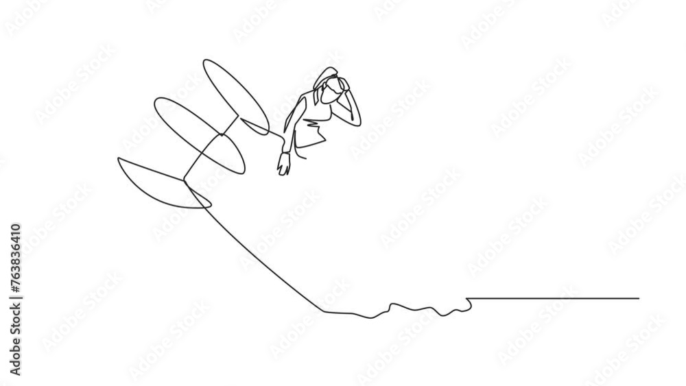 Animated self drawing of single one line drawing businesswoman sits ...