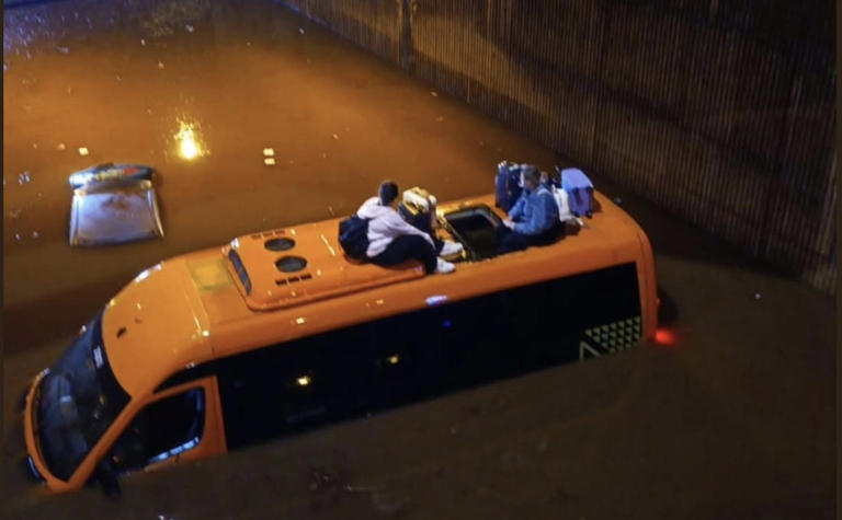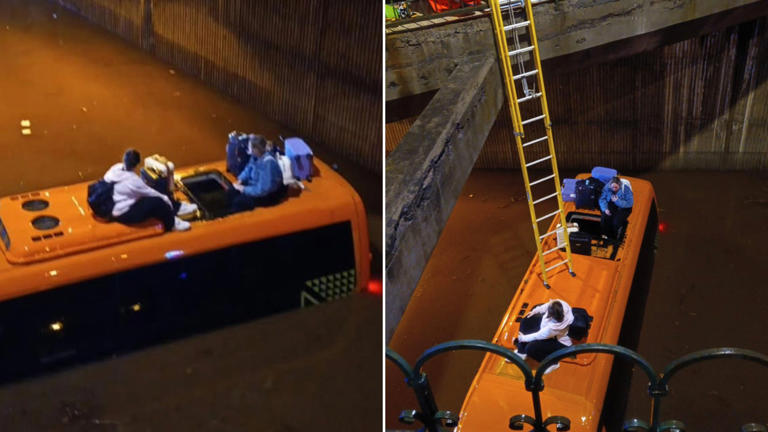 British tourists stranded on top of a minibus after 'storm of century ...