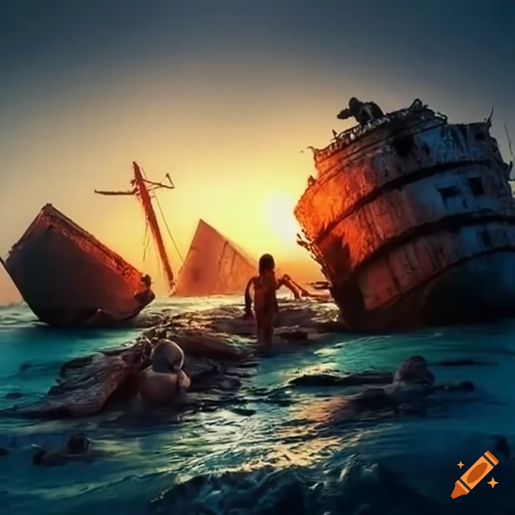 Shipwrecked people on a deserted island trying to survive on Craiyon