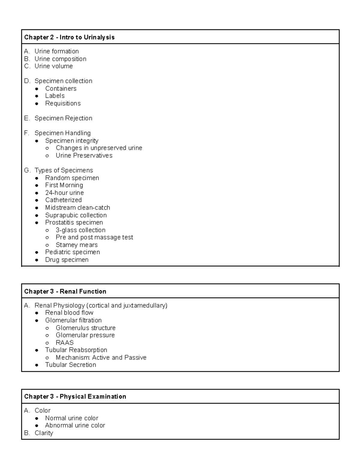 Strasinger Outline (Chapters 2-4) - Chapter 2 - Intro to Urinalysis A ...