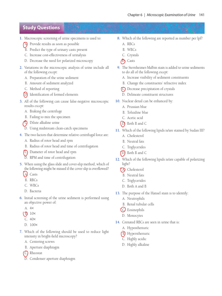 Chapter 6 Microscopic Examination of Urine [STRASINGER] Questions and ...