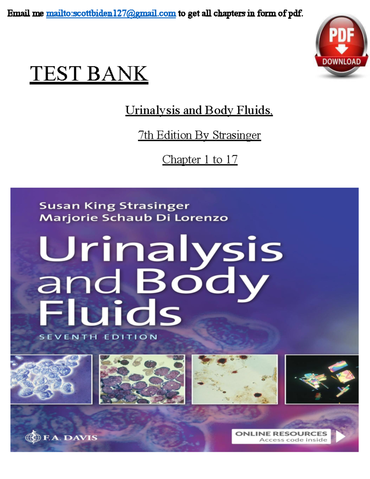 TEST BANK: Urinalysis and Body Fluids, 7th Ed. by Strasinger - Ch. 1-17 ...