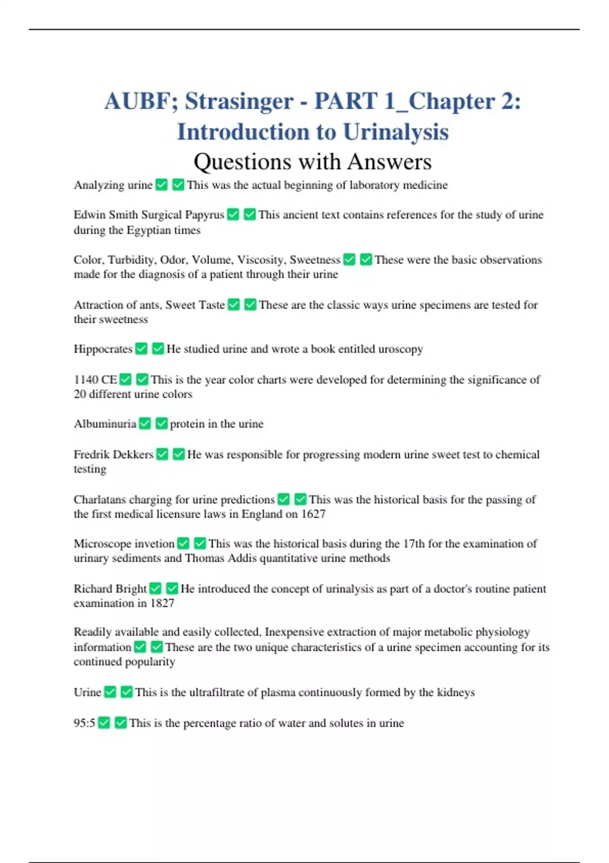 FULL TEST BANK For Urinalysis and Body Fluids Seventh Edition by Susan ...