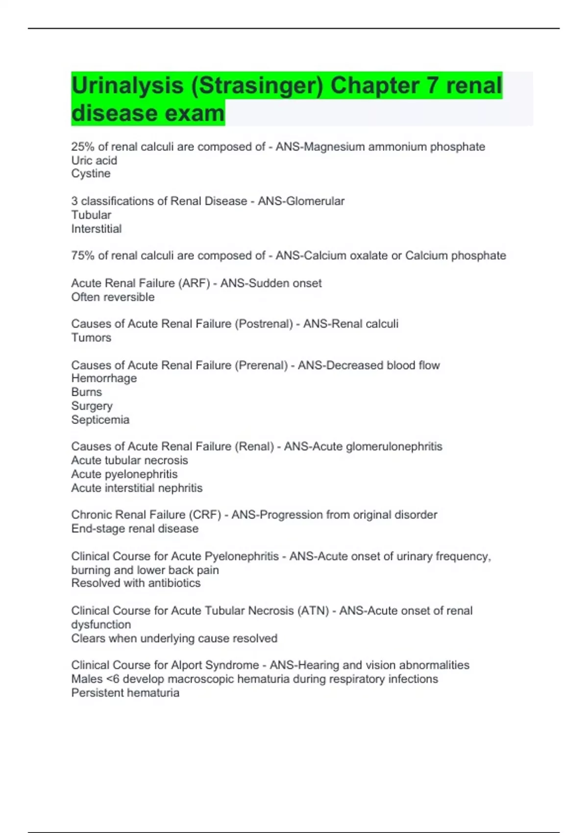 Urinalysis (Strasinger) Chapter 7 renal disease exam - Strasinger ...