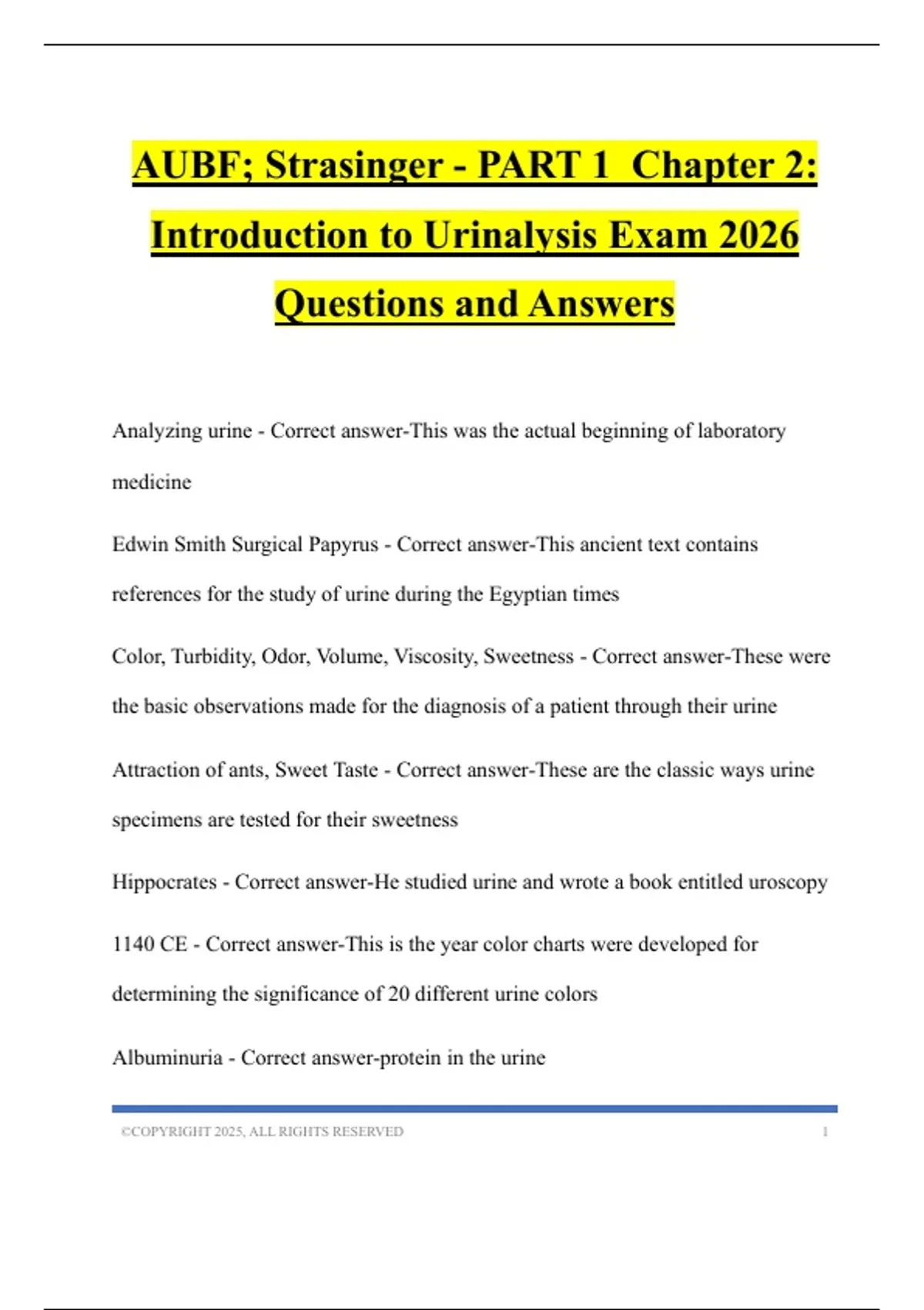 Strasinger Chapter 4 Physical Examination of Urine Exam 2024 Questions ...