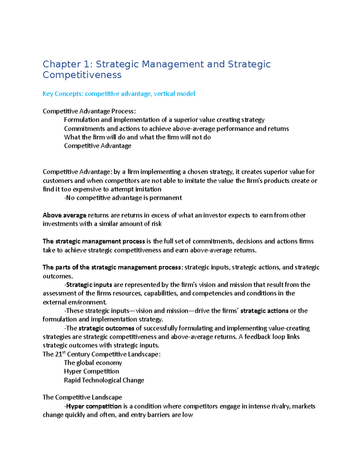 Strategic Management Class Notes - Key Concepts & Processes (STRAT 101 ...