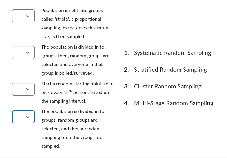 Solved Population is split into groups called 'strata', a | Chegg.com