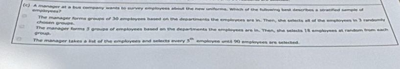 Solved: A manager at a bus company wants to survey employees about the ...