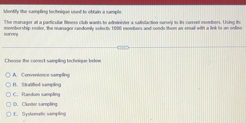 Solved: Identify the sampling technique used to obtain a sample link to ...