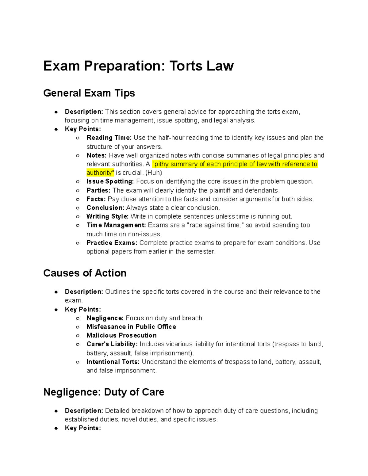 Torts Law Exam Prep: Key Strategies & Legal Principles - Studocu