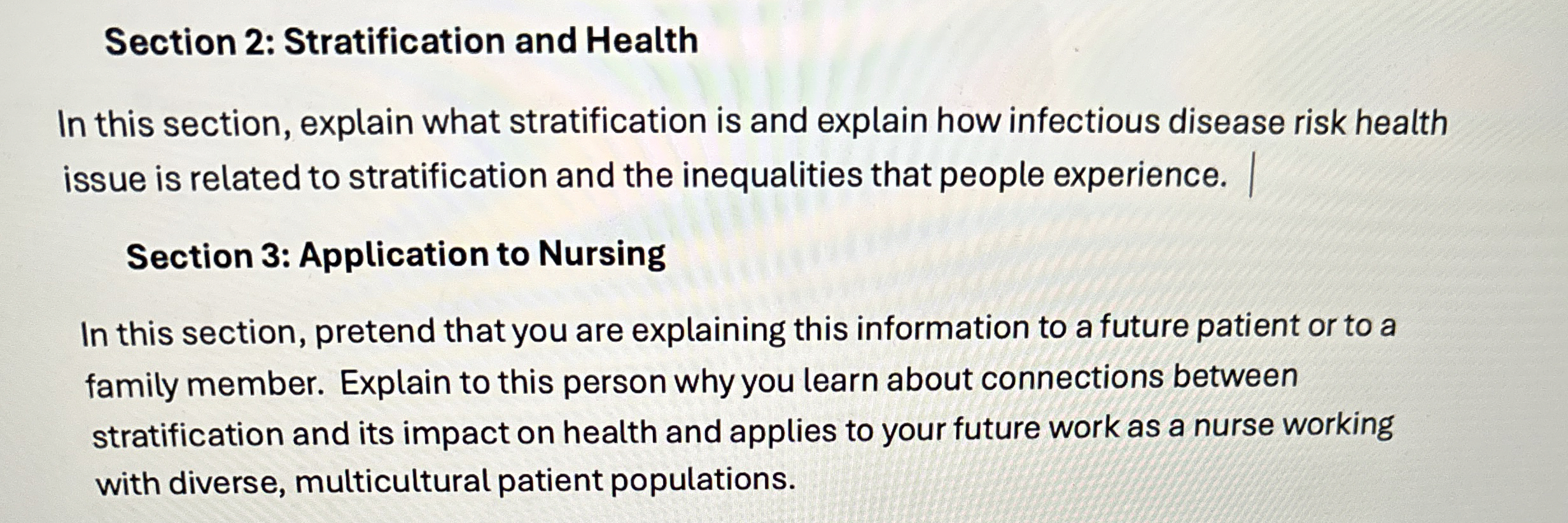Solved Section 2: Stratification and HealthIn this section, | Chegg.com