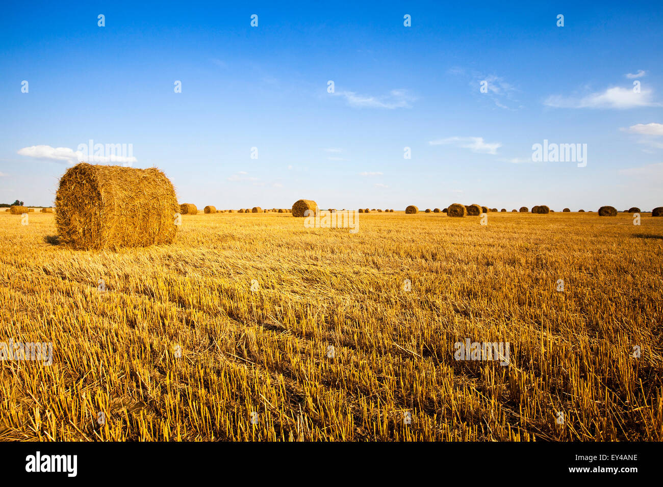 Harvest in the fields. Straw bales collapsed. End of summer Stock Photo ...