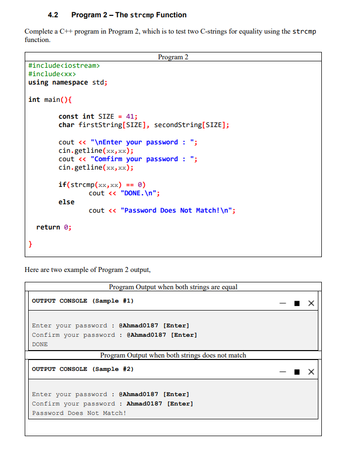 Solved 4.2 Program 2 - The strcmp Function Complete a C++ | Chegg.com