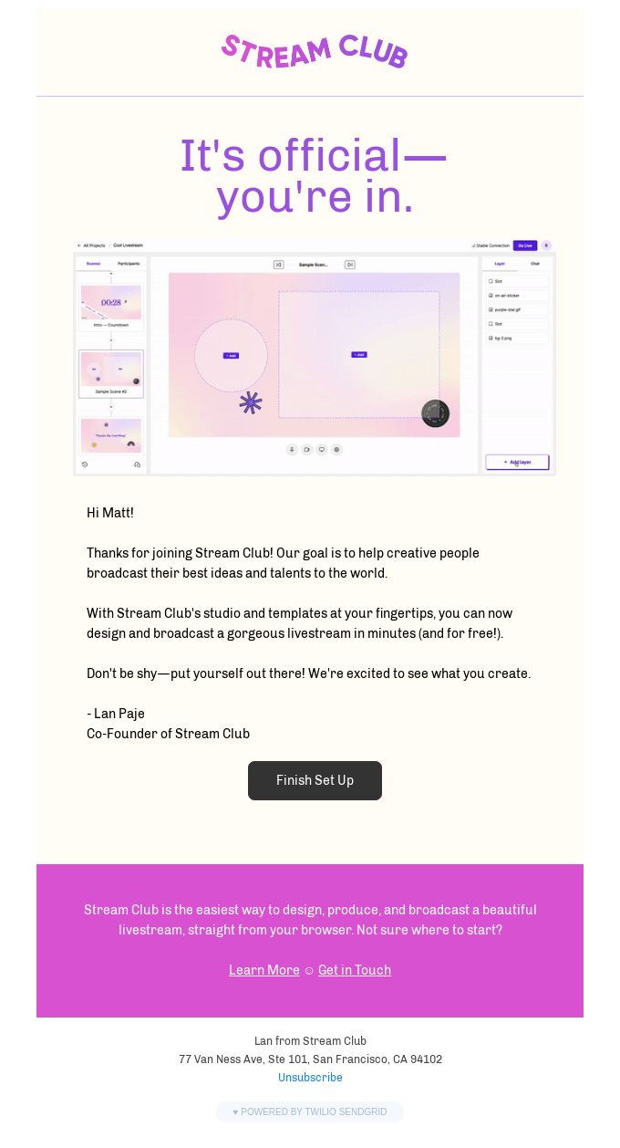 Welcome to the Club! 🌊 from Stream Club - Desktop Email View | Really ...