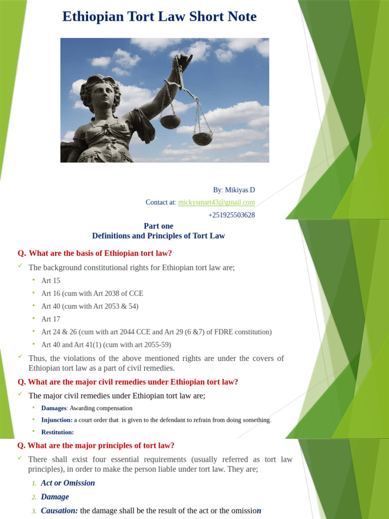 Ethiopian Tort Law Short Note | PDF | Tort | Defamation