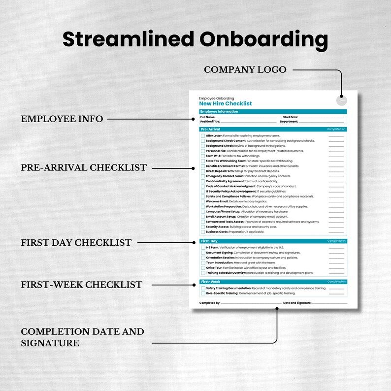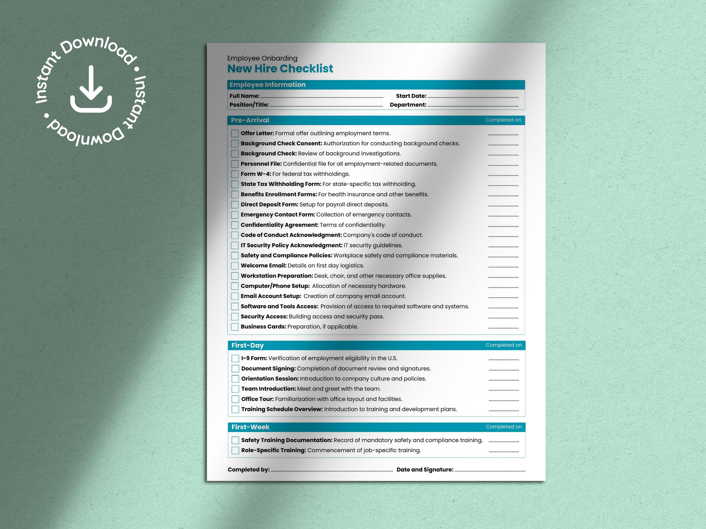Comprehensive New Hire Checklist: Customizable HR Forms Digital ...