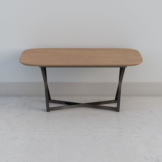 Sleek Streamlined Dining Table 3D Model – Wood & Metal
