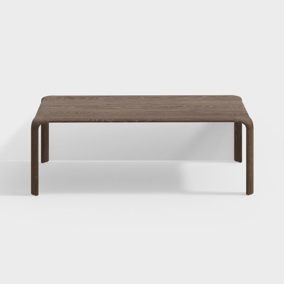 Streamlined Wooden Table 3D Model – Curved Wood Design