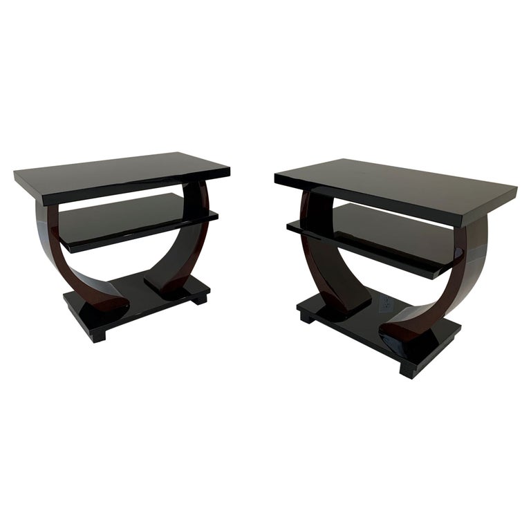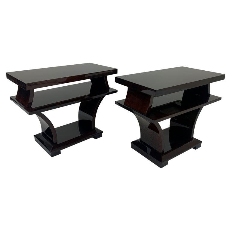 1930s Streamline Art Deco Walnut and Black Lacquer Two Tier Side Tables ...