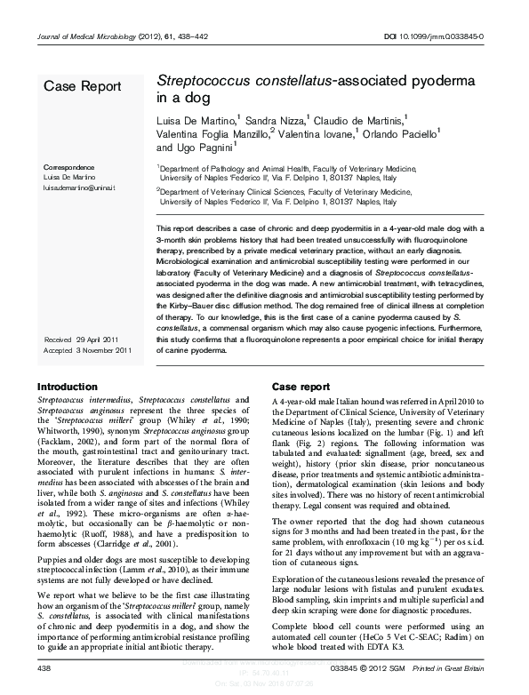 (PDF) Streptococcus constellatus-associated pyoderma in a dog