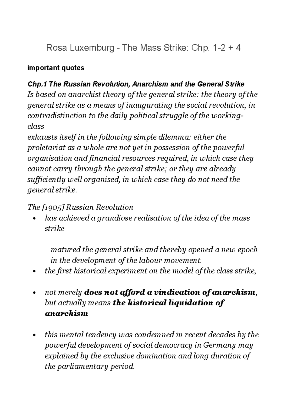 Rosa luxemburg MT - mass strike notes - GV262 - London School of ...