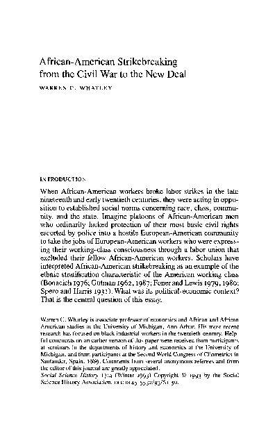 (PDF) African-American Strikebreaking from the Civil War to the New Deal