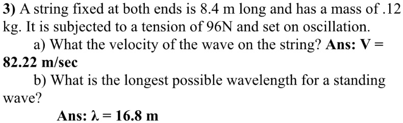 3) A string fixed at both ends is 8.4 m long and has a mass...