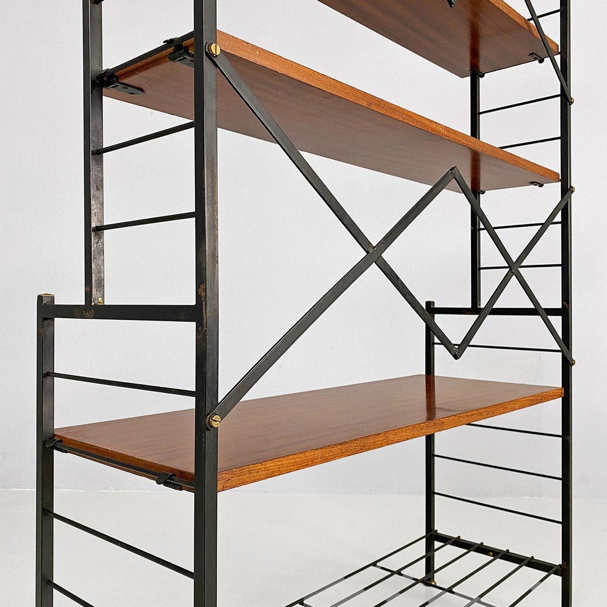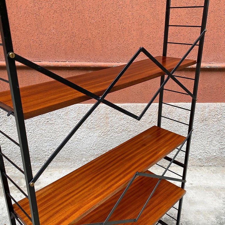 Italian Mid-Century Modern Self-Supporting String Bookcase with Brass ...