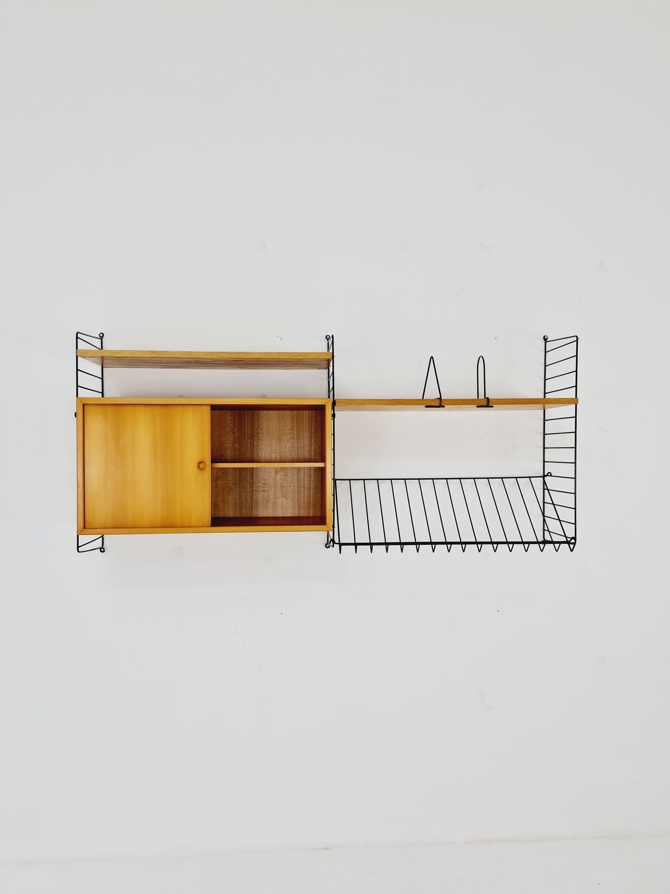 Wall-mounted original Swedish string shelf-system, drawers, bookcase ...