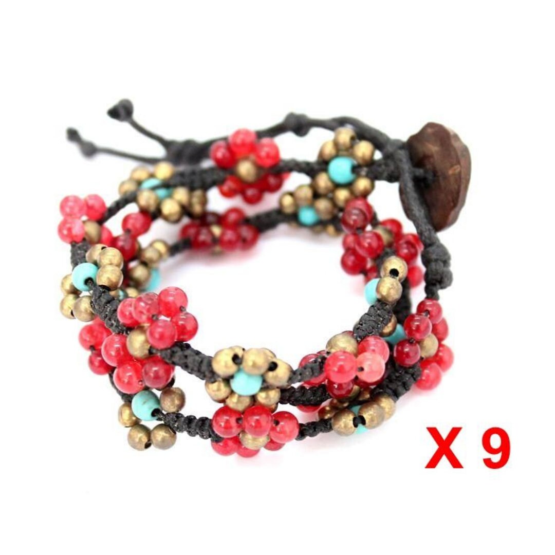 9 Piece BUNDLE Flower Double String Bubbles & Brass Beads Adjustable ...