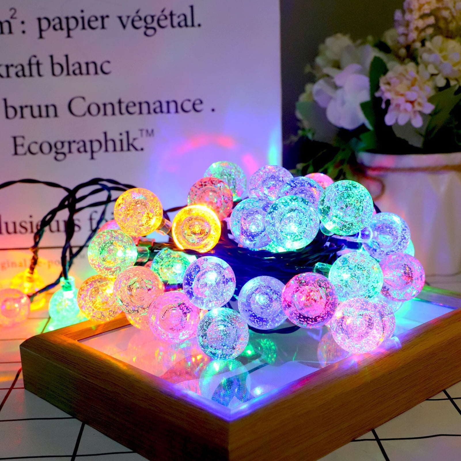 50Led String Bubbles Crystal Ball Light Outdoor Garden Solar Waterproof ...