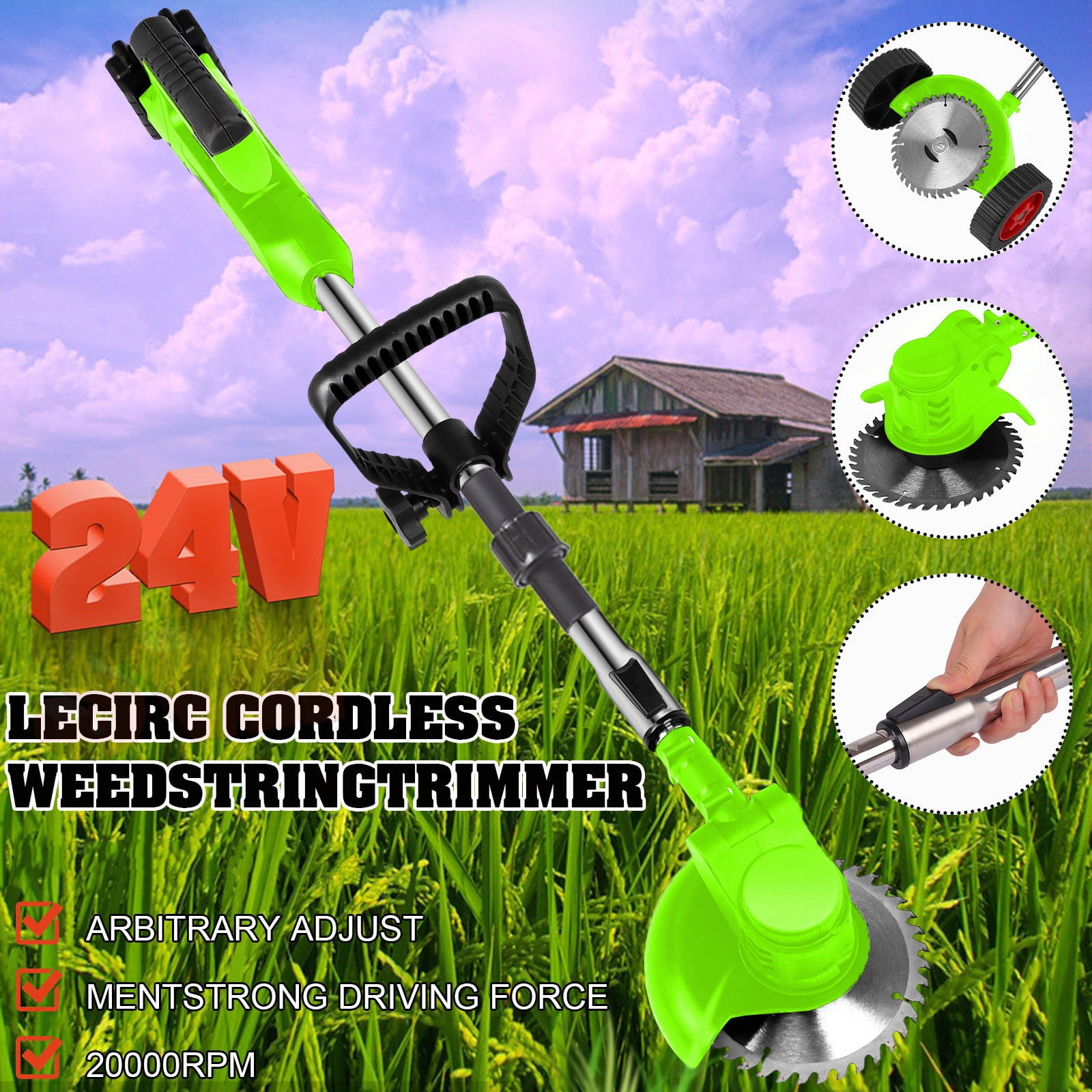 iMeshbean Cordless Grass String Trimmer Battery Powered, 24V with ...
