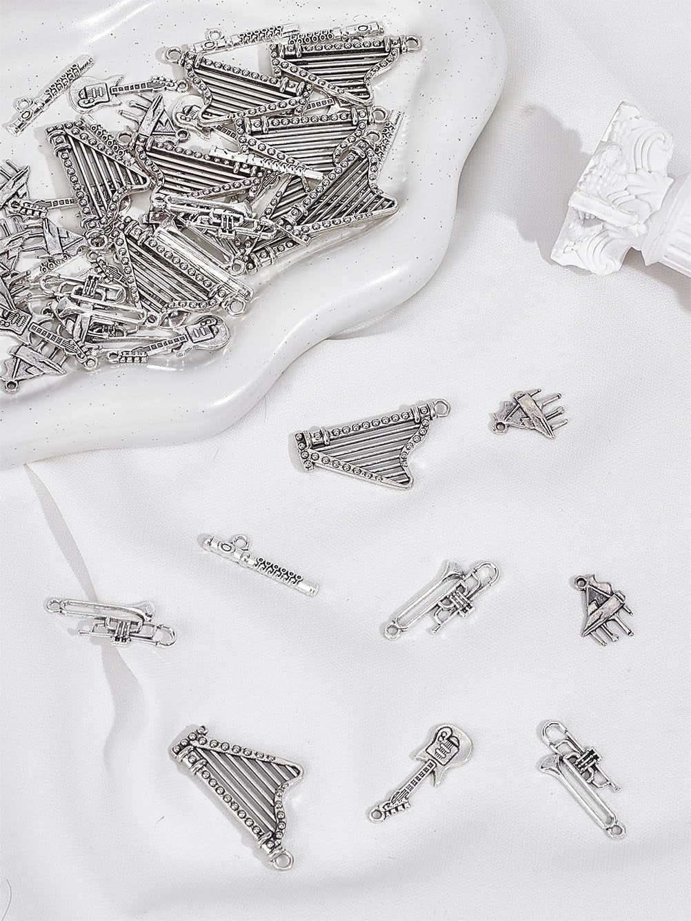 50Pcs 5 Styles Tibetan Style Alloy Pendants Musical Instruments Charms ...