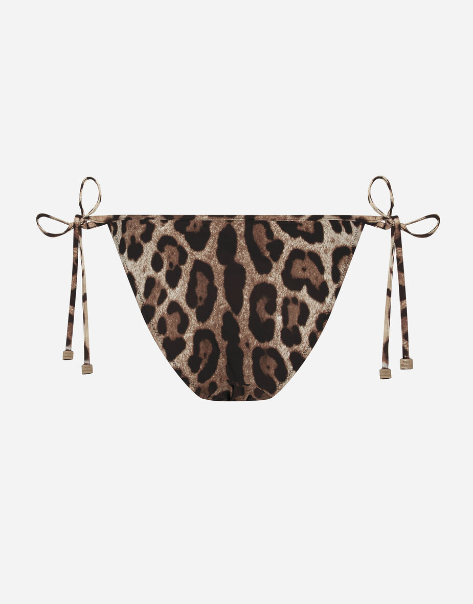 Leopard-print string bikini bottoms in Multicolor for Women | Dolce ...