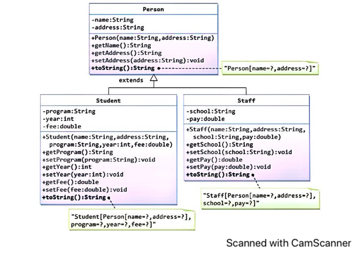 Solved QUESTION 1: INHERITANCE Person -name:String -address: | Chegg.com
