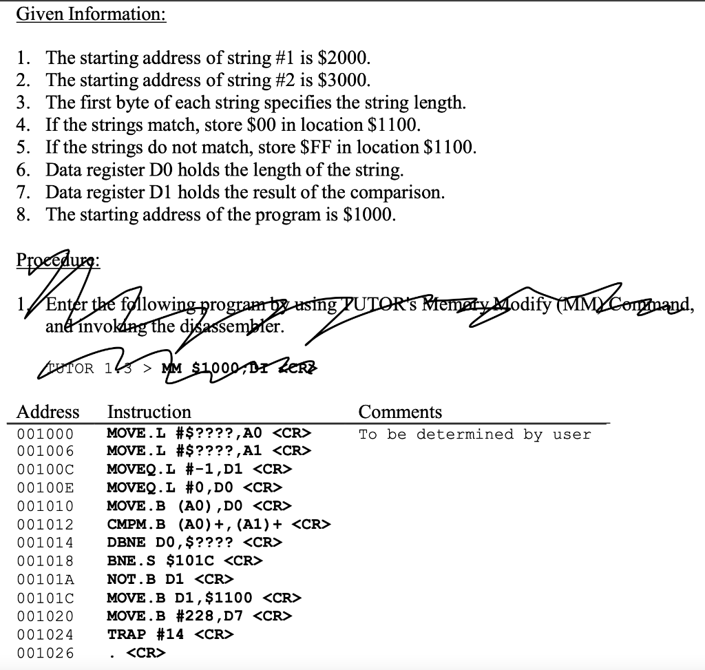 Solved Given Information: 1. The starting address of string | Chegg.com