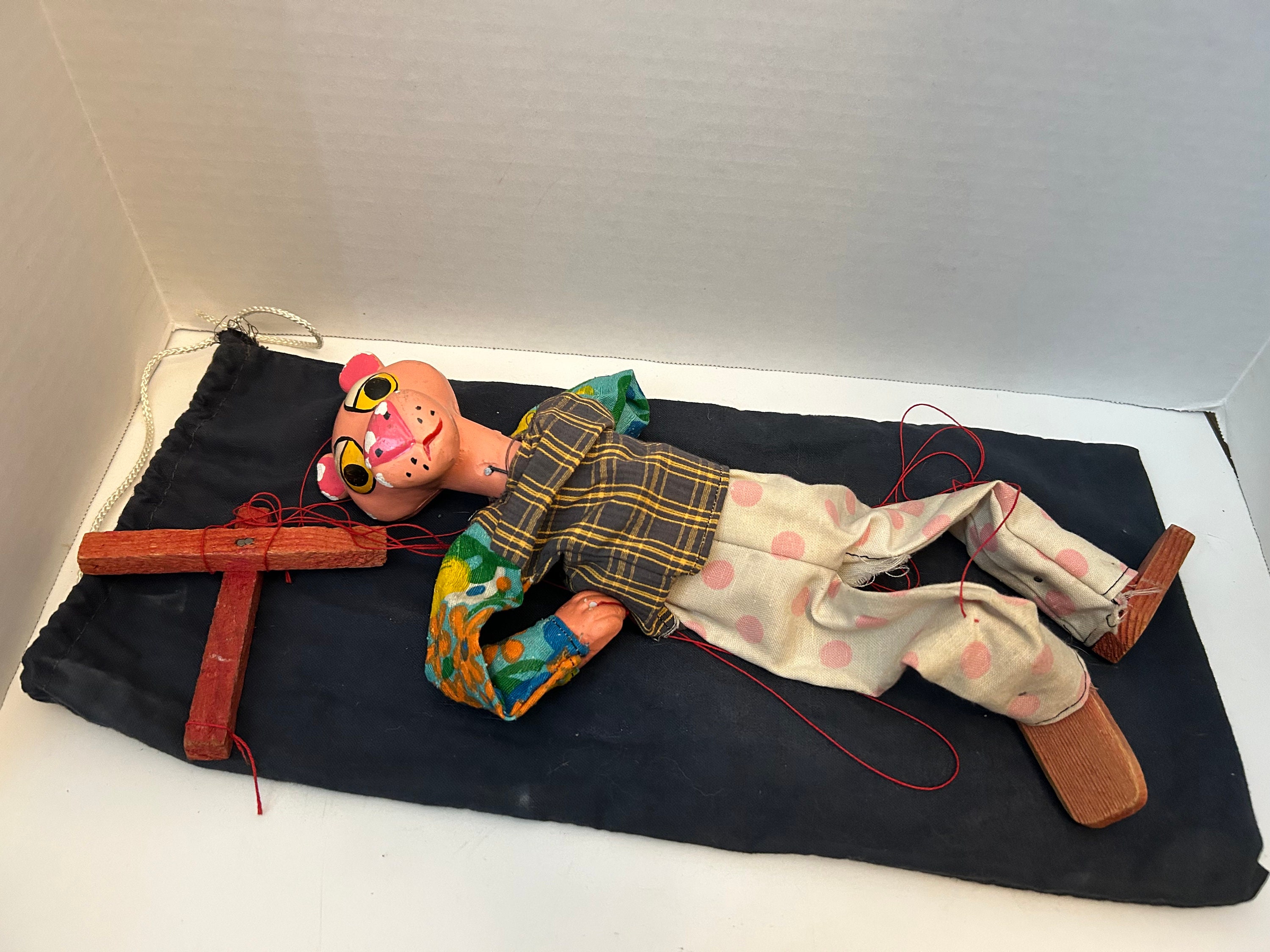 Vintage Pink Panther Marionette String Puppet Ceramic Mexico Handmade ...