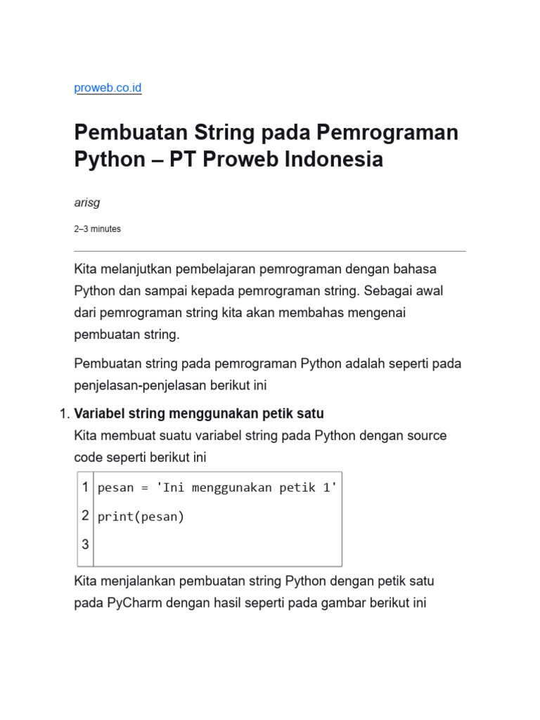 Pembuatan String Pada Pemrograman Python | PDF | Teknologi & Rekayasa