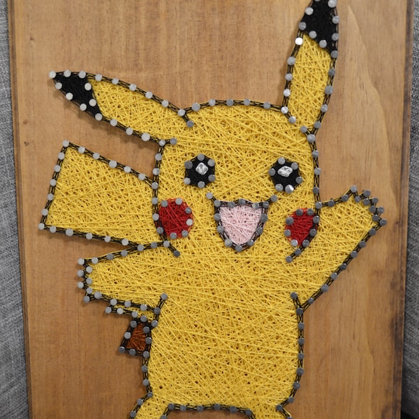 Nail String Art on Stained Wood Pikachu - Etsy