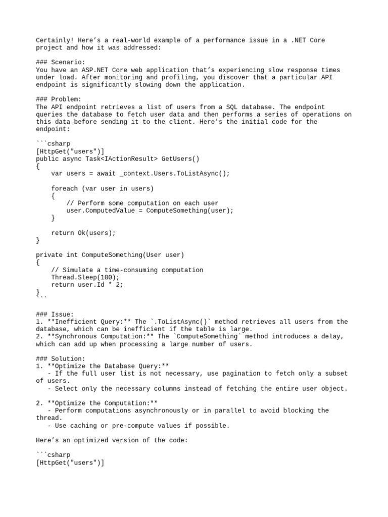 Code Performace Issue Example in Real Time Project | PDF | Databases ...