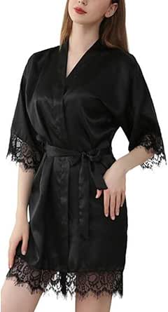 Nightwear Kimono Sexy Nightwear Silk Satin Lace Dressing Gown Bath Robe ...