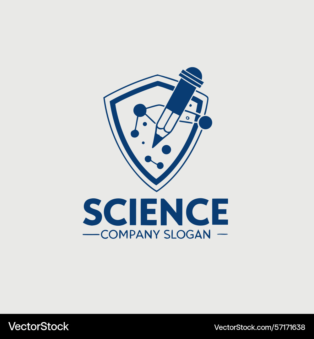 Science logo with pencil and shield Royalty Free Vector