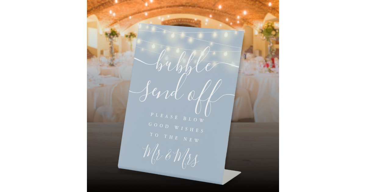 Bubble Send Off String Lights Dusty Blue Pedestal Sign | Zazzle